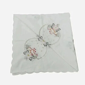 Very good condition. Vintage White Hand Embroidered Floral Scalloped Edge Tablecloth 33" x 31"