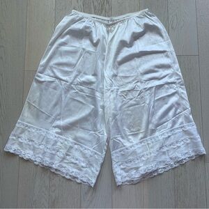Vintage White Lace Trim 100% Nylon High Rise Wide Leg Bloomers Pettipants Shorts