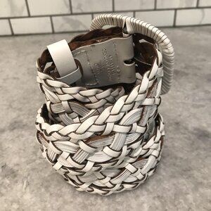 Vintage White Leather Belt Womens Large Braided Wide Woven Wrapped Buckle Boho