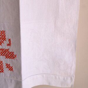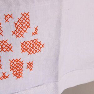Vintage White Linen Damask Towels With Orange Cross Stitch, Set Of Hand Towel