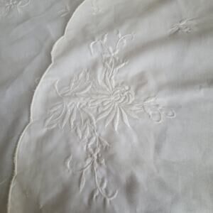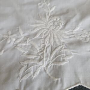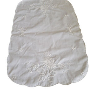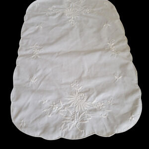 Vintage White Linen Doilies, Vanity Cloth, Dressers Scarf Embroidery Set of 4