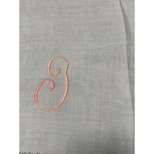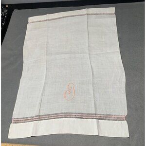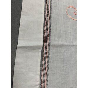 Vintage White Linen Hand Towel with Pink Embroidered Initial Monogram