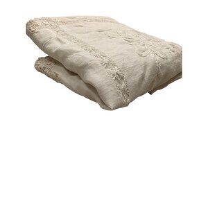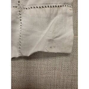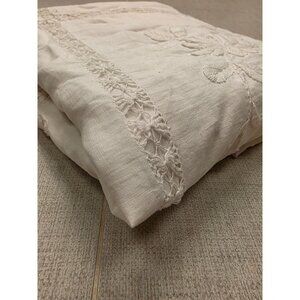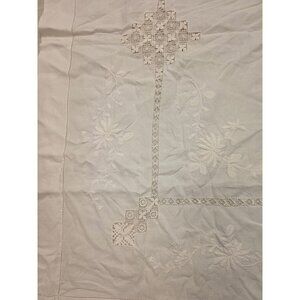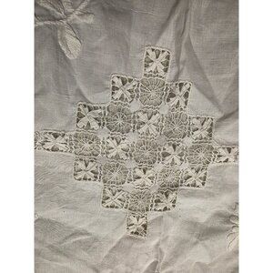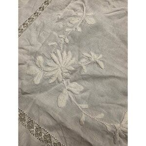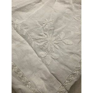 Vintage White Linen Tablecloth With Floral Embroidery & Crochet Details 48x48 In