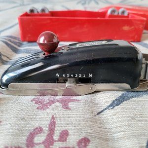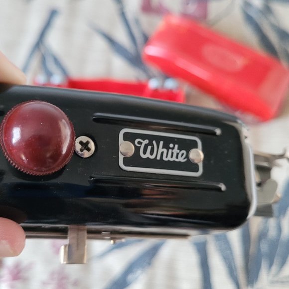 Up for sale is a vintage White Magic Key Buttonholer. Comes with everything in above pictures including original red box and illustrated manual. Please see photos for contents and condition.