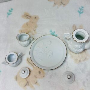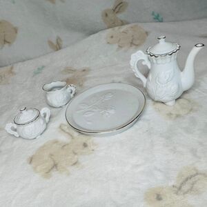 Vintage White Matte Floral/ Gold Edge Miniature Tea Set