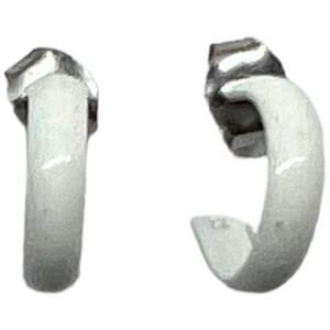 These vintage earrings feature a simple yet elegant mini hoop design in a white metal finish. Measuring approximately 0.5 inches by 0.5 inches, these compact hoops have a classic, timeless look.