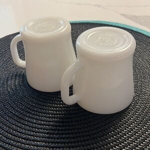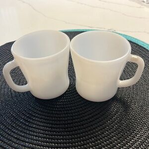 Vintage White Milk Glass D Handle Mugs - set of 2