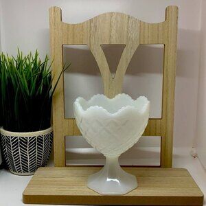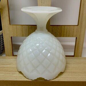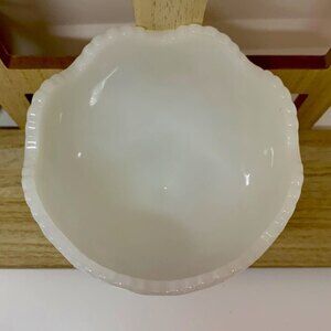 Vintage White Milk Glass Diamond Quilted/Scalloped Edge Pattern Vase/Bowl/Dish