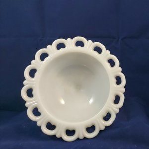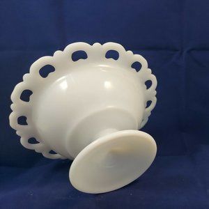 Vintage White Milk Glass Pedestal Footed Candy Dish Compote Bowl Lace Edge