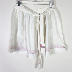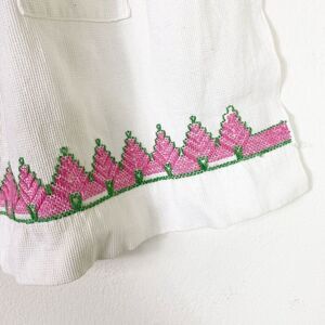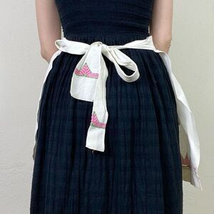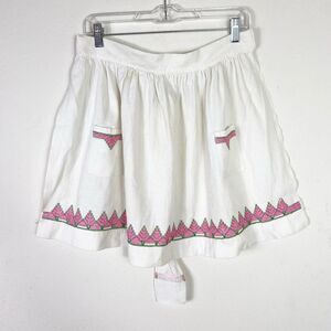 Vintage White & Pink Embroidered Half Apron with Pockets Size M