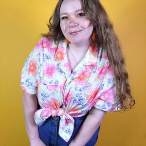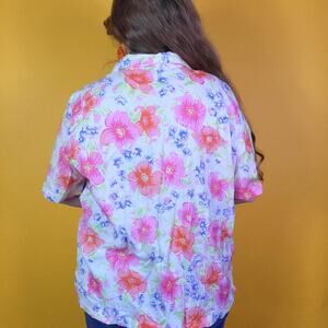Vintage White Pink Floral Button Up Blouse, 2XL