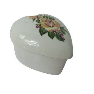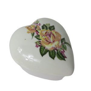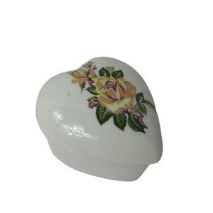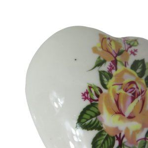 Vintage White Porcelain Heart Shape Trinket Jewelry Box Roses Transfer Applicate