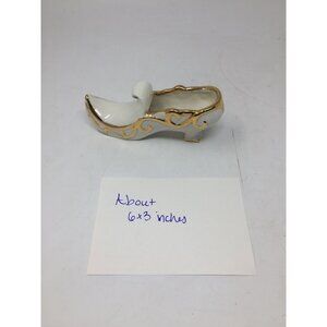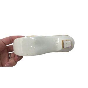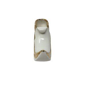 Vintage White Porcelain Shoe with Heel Trimmed in Gold with Curled point