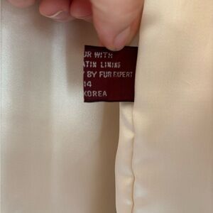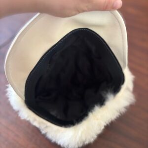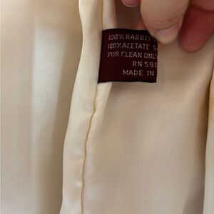 Embrace warmth and elegance with this luxurious white rabbit fur jacket with matching hat. Perfect for any occasion.