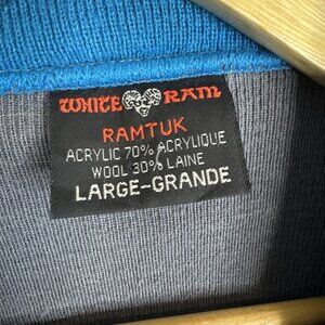 Vintage White Ram Ramtuk Full Zip Wool Blend Sweater Jacket Large Gray Black Blue ski