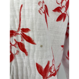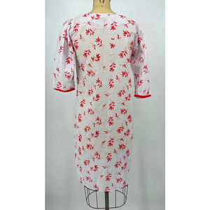 Vintage White Red Cherry Blossom Print Asian Inspired Knee Dress Large