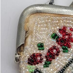 Vintage White Red Floral Beaded Small Coquette Wrist Purse Handbag