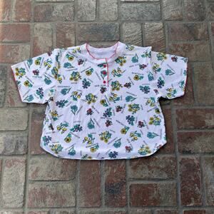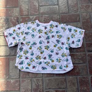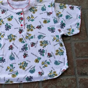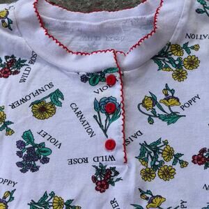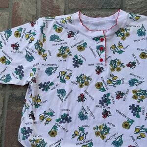 Vintage White Red Flowers Top Boxy Short Sleeve Button Cropped Poppy Rose Violet