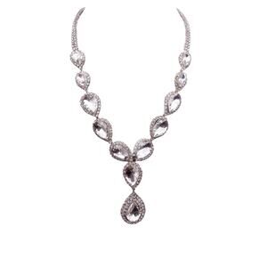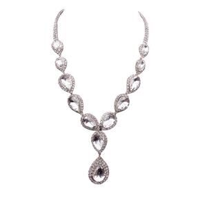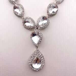 Vintage White Rhinestones Tear Drop Necklace