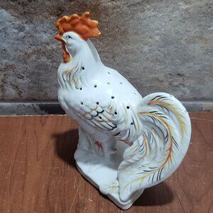 Vintage White Rooster Scented Sachet Potpourri Holder Ventilation Holes Top Deco