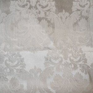Vintage White Satin Floral Pattern Table Cloth 66" x 102" Oval