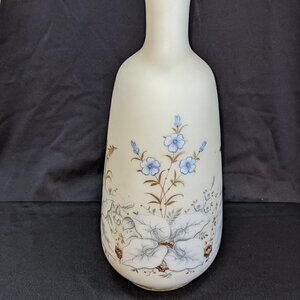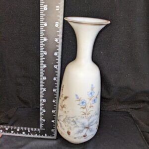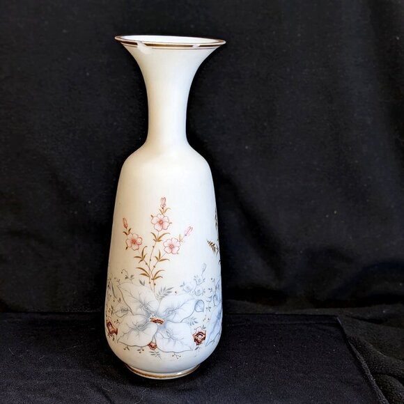 Vintage White Satin Glass Floral Vase with Gold Trim