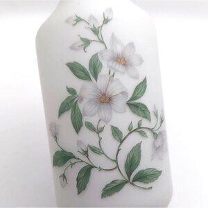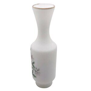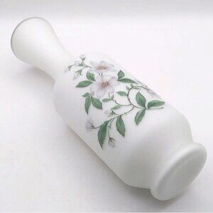 Vintage White Satin Glass Vase With Floral Design & Gold Trim