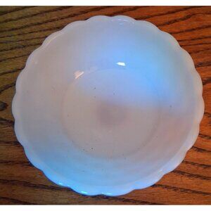 Vintage White Scalloped Milk Glass Compote Dish With Wooden Base