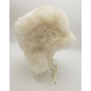 Vintage White Sheepskin Fur Hat With Ear Flaps & Ties, No Tags, Approx S/M