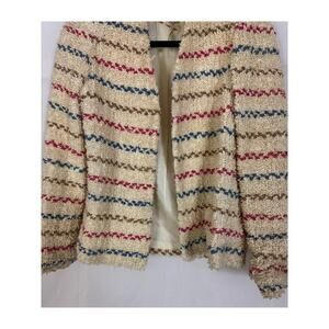 Vintage White Stag Bouclé Jacket Women’s Medium Made in USA Striped Retro Lined