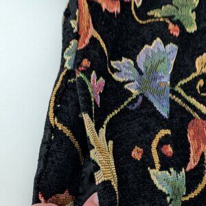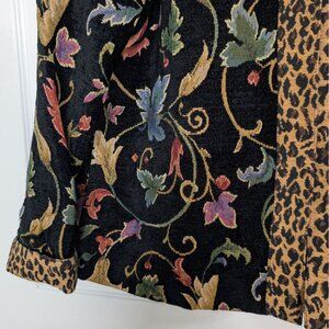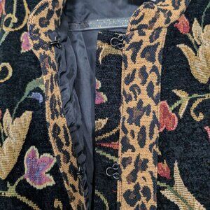 Vintage White Stag Womens Black Floral Leopard Animal Print Trim Tapestry Jacket Size Large
