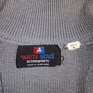 Vintage White Stag Grey Wool Blend Quarter Zip Pullover Sweater Size L