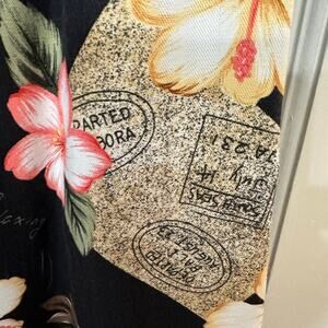 Vintage White Stag Hawaiian Button-Up Camp Shirt Women Plus Size 14W/16W Woven Tropical Floral Travel Cruise Wooden Buttons 100% Rayon Short Sleeve