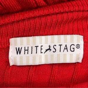 Vintage White Stag Large Red Ribbed Knit Top Classic Retro Turtleneck