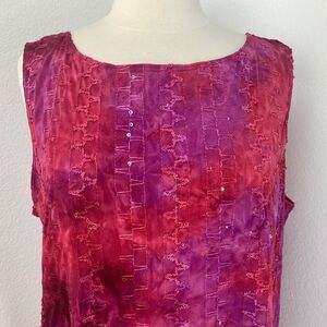 Vintage White Stag Red Purple Tye Dye Tunic Top XL Embroidery Sequins Boho Chic