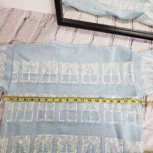 Vintage White Stag Short Sleeve Sweater Baby Blue & White Window Design VGUC
