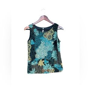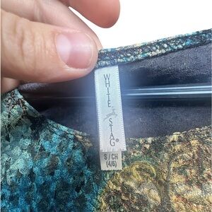Vintage White Stag Women’s Earth Toned Abstract Print Blouse Size Small Y2K
