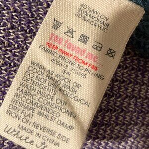 Vintage White Stuff size women's 14 but fits like medium-large; 40% nylon, 30% mohair, 30% acrylic. Gorgeous deep turquoise color, has some stitch detailing and beads toward the neckline, a very subtle touch. Looks cute tied or untied, a cozy autumn piece! Good pre-owned condition.