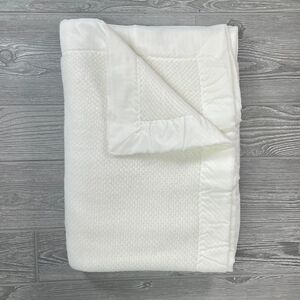 Vintage White Thermal Waffle Weave STIFF Acrylic Baby Blanket Nylon-like Trim