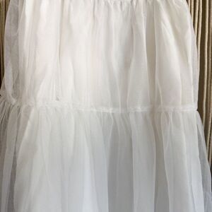 Beautiful vintage white bridal gown from JC Penney in great condition. This romantic dress features a bright white color, spaghetti straps, and a tiered flowing skirt that gives soft, whimsical movement.