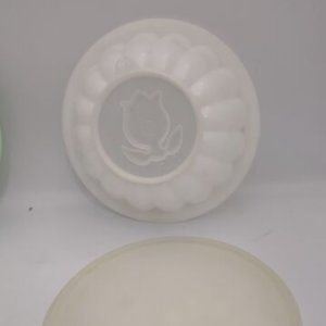 Vintage White Tupperware Jell-O Mold Jel-N-Serve With Lid Flower Tulip Design