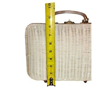 Vintage White Wicker Purse w/Pearl Lucite Handles Mid Century Modern Hong Kong
