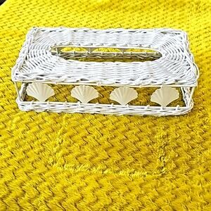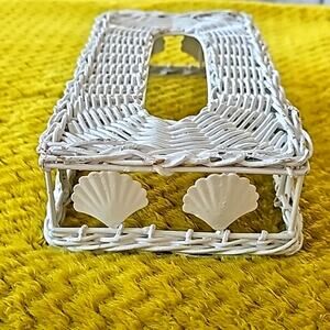 Vintage White Wicker with Seashells Tissue Box Holder Beachy