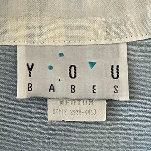 Vintage White YOU Babes Cropped Patchwork Button Front Shirt Medium USA Made