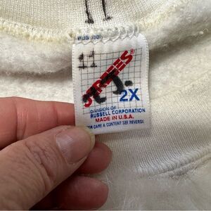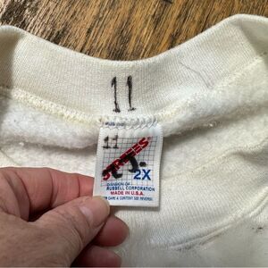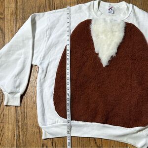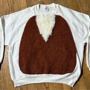 Cozy white sweatshirt with a brown fleece patch. Unique design with a soft texture. R#5