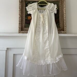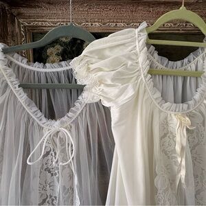Elegant vintage chemises with lace detailing and matching robe. Vintage from the 1950’s, in perfect condition. Features puff sleeves and flowing design. Perfect for brides!