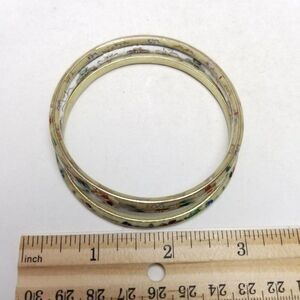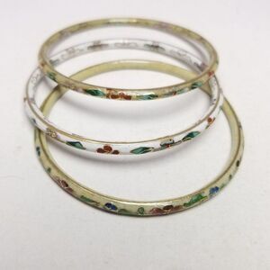 Vintage White and Tan Floral Design Enamel Bangle Bundle, Lot of 3, Stacking