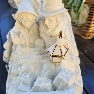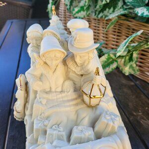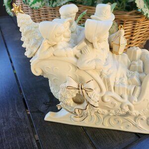 Vintage White with Gold Trim Porcelain Christmas Sleigh with family
