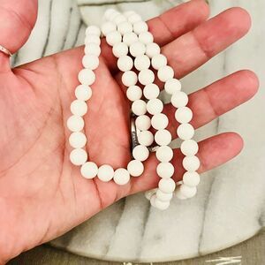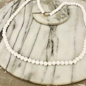 Vintage White Beaded Necklace Round Acrylic Bead Single Strand 1960s Retro
