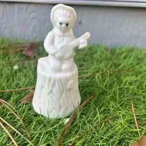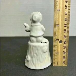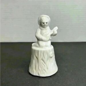 Vintage White Porcelain Taiwan Folk Art Banjo Boy on a Tree Stump Bell